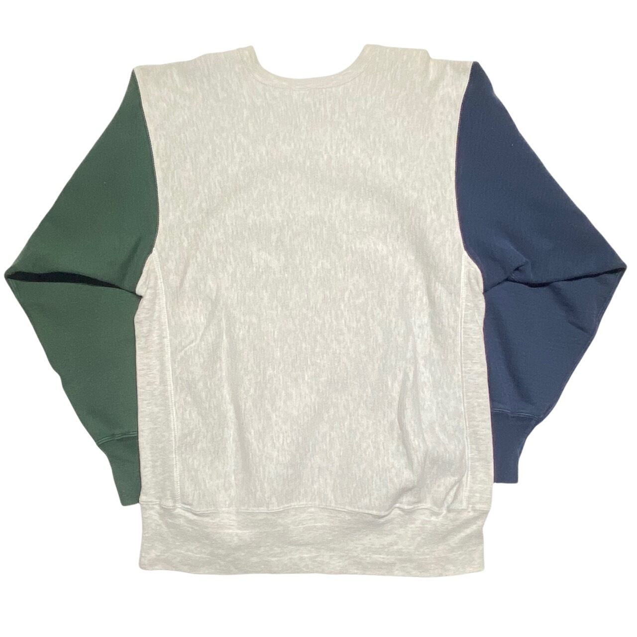 希少なクレイジーパターン(灰・紺・緑)のリバースウィーブで2段カレッジプリントになります。