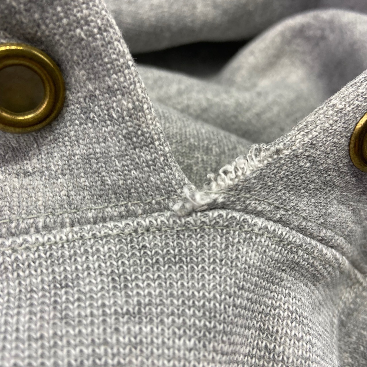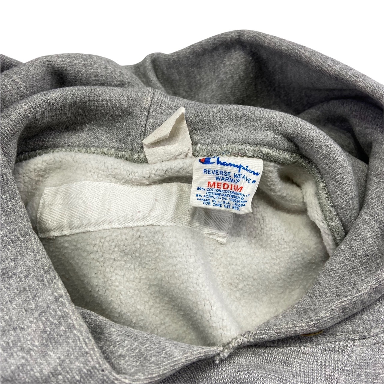 ピンホール、ペイント汚れ、黄ばみ有り、フード部にダメージ、ネームタグの縫い付け糸露出有り。着用感はございますが、生地はまだまだフカフカで状態良好です。