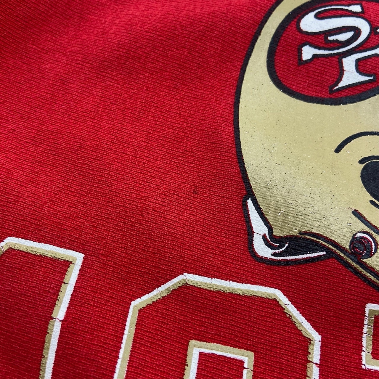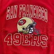 文字の間にはSANFRANCISCO 49ERSのヘルメットが大きくプリントされています。