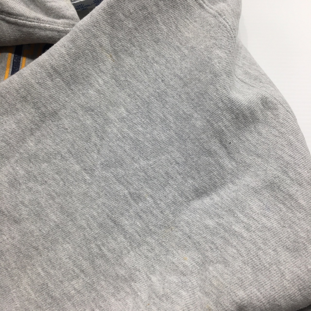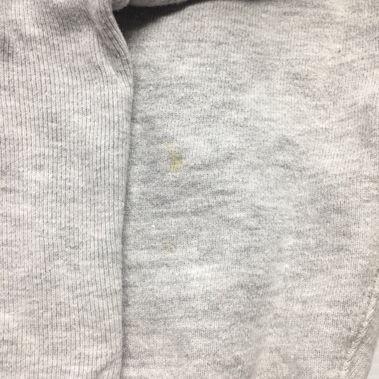両袖とフードに薄汚れ有。左袖に付け根に軽度のピンホールありますが、それ以外はボディーのダメージはほぼなく、プリントの状態もよいです。生地もフカフカで全体的に状態良好です。
