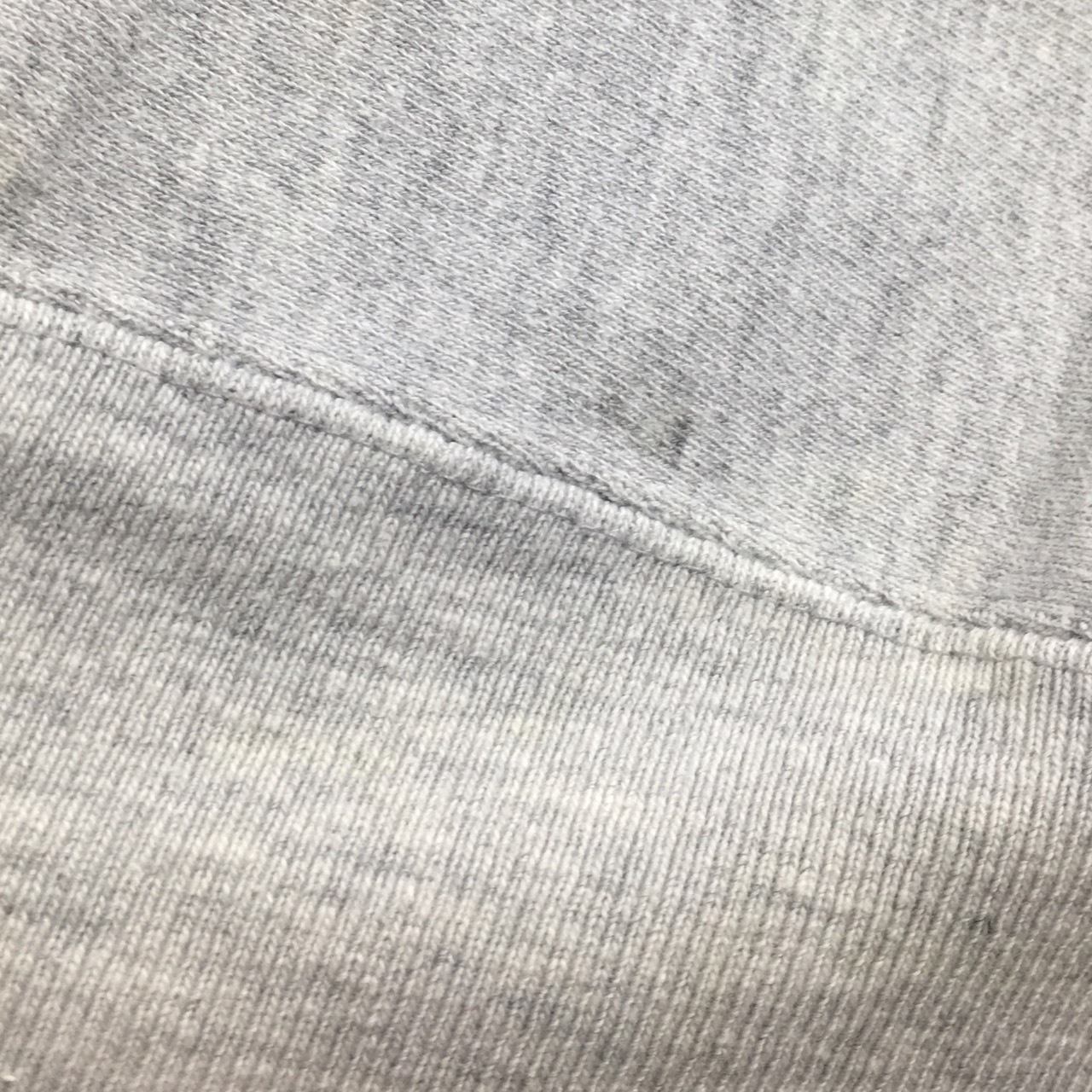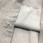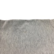 全体的に薄汚れ、インク染み有り、裾リブにダメージ有りますが、刺繍部にダメージはほとんどなく、生地はフカフカでまだまだお楽しみいただける一枚です。
