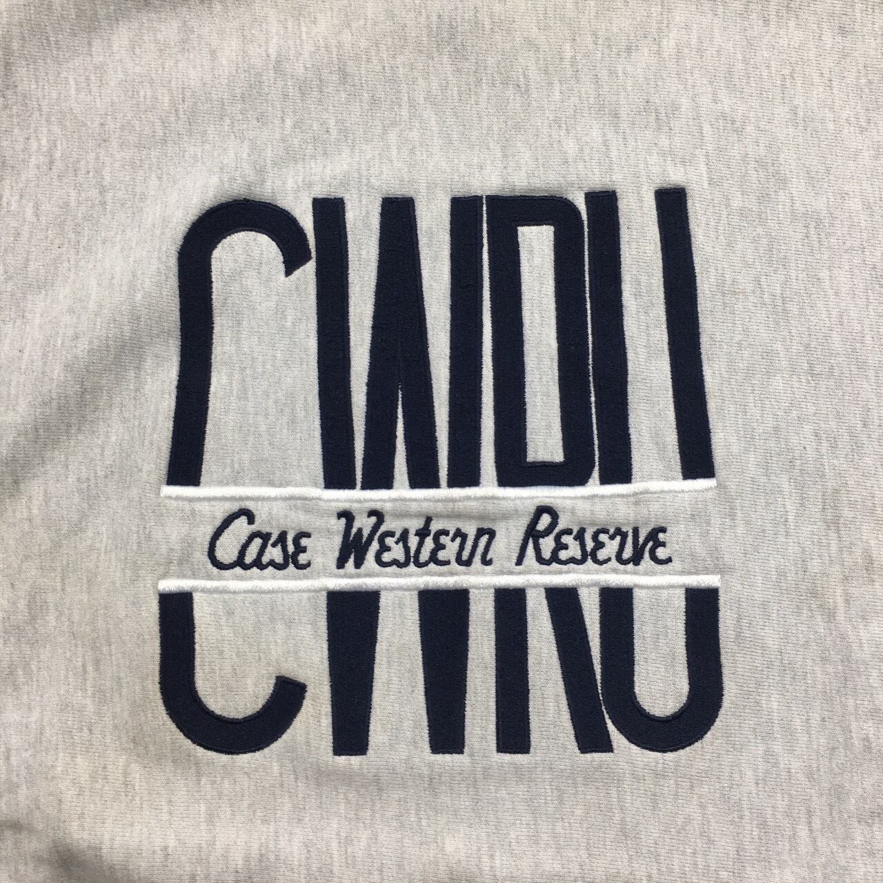 ボディー前面に”Case Western Reserve”と大学の頭文字”CWRU”がネイビーとホワイトの二色で刺繍。