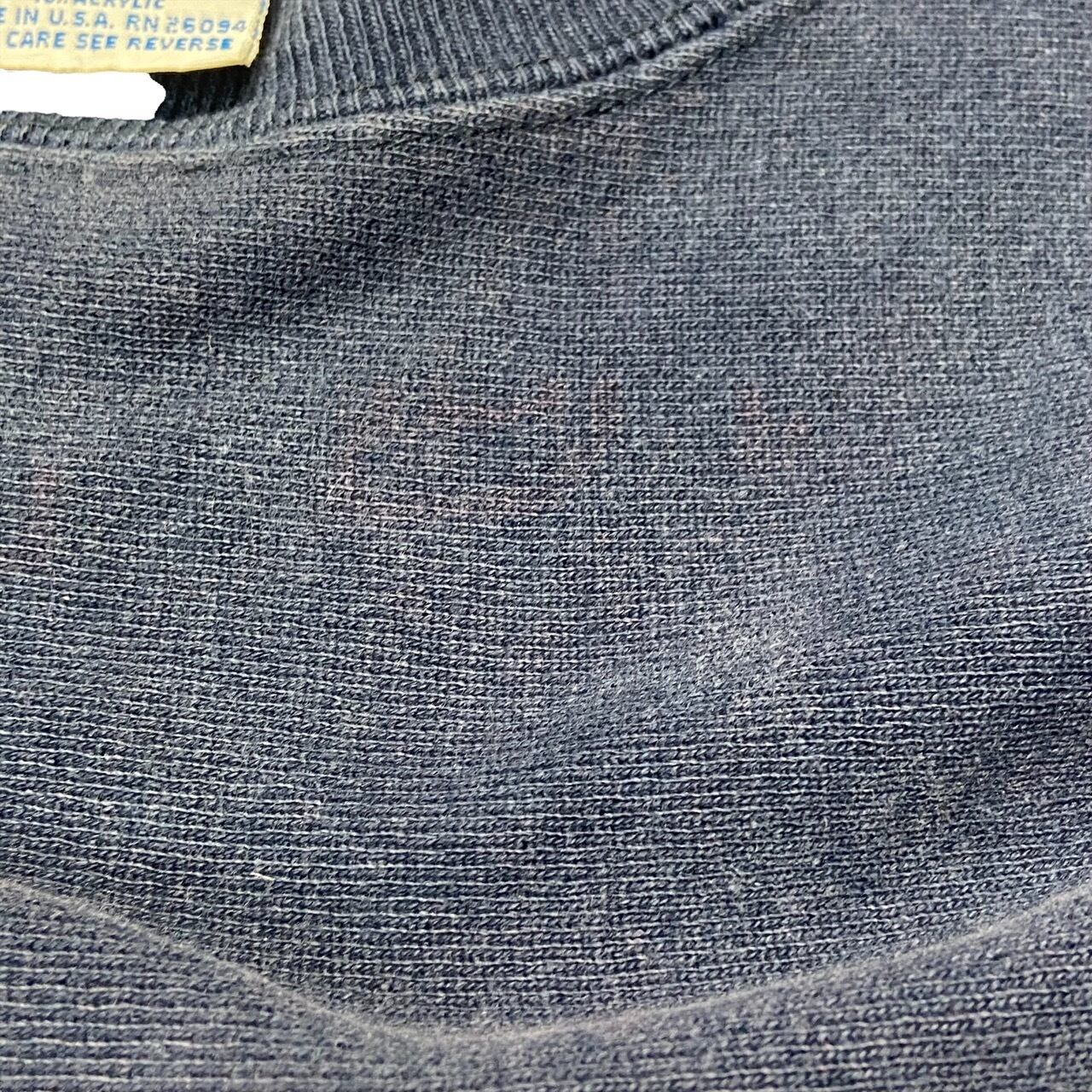 コンディション:スレ・色飛び(ボディ両面、両袖、右袖リブ)・左袖ダメージ・右袖ピンホール・着用感